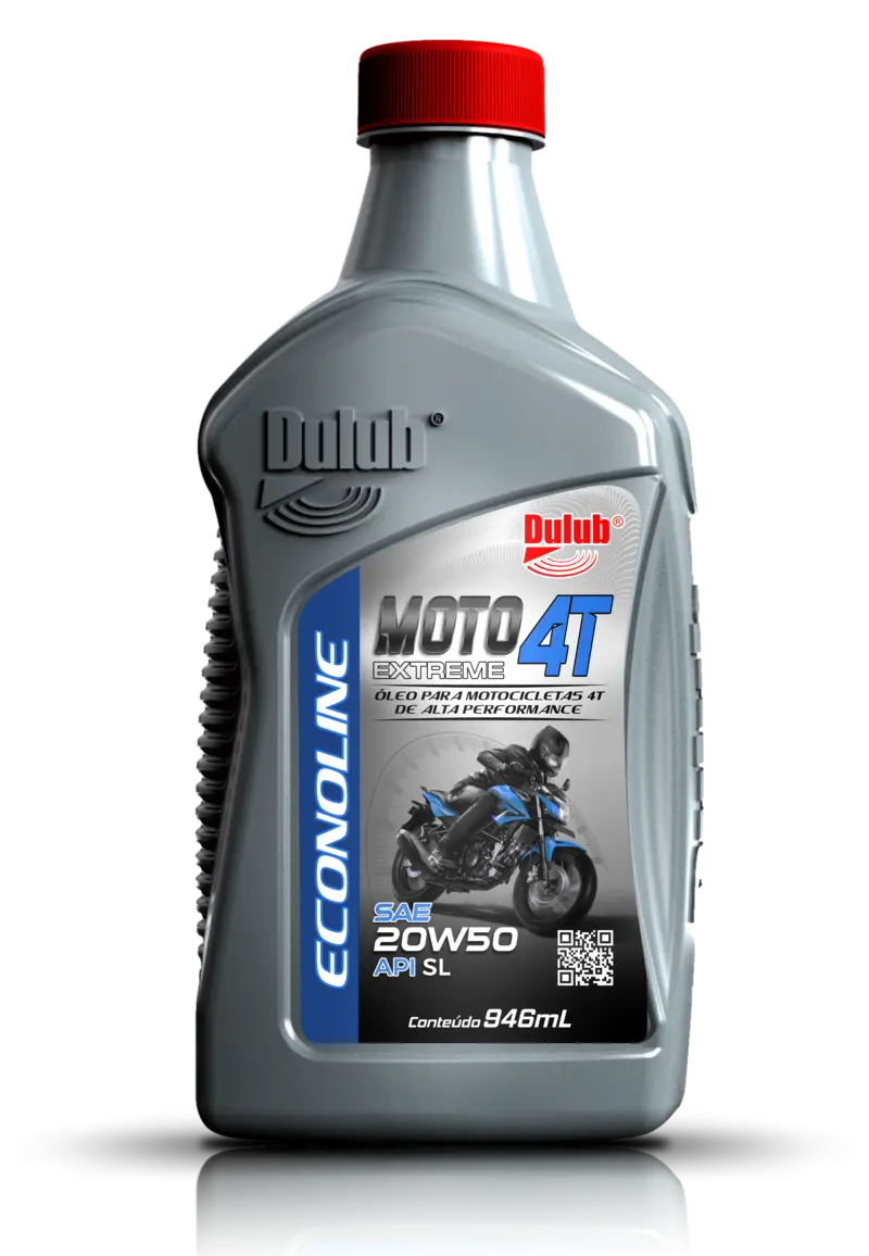 Óleo lubrificante multiviscoso mineral de avançada tecnologia para uso em motores de motocicleta quatro tempos de alta rotação. Atende as especificações de serviços API SL e JASO MA. Disponível no grau SAE 20W50. Econoline Moto 4T Extreme é recomendado para o uso em todos os motores de motocicletas 4 tempos, e especialmente desenvolvido para proporcionar superior performance aos motores que operam em condições extremas.