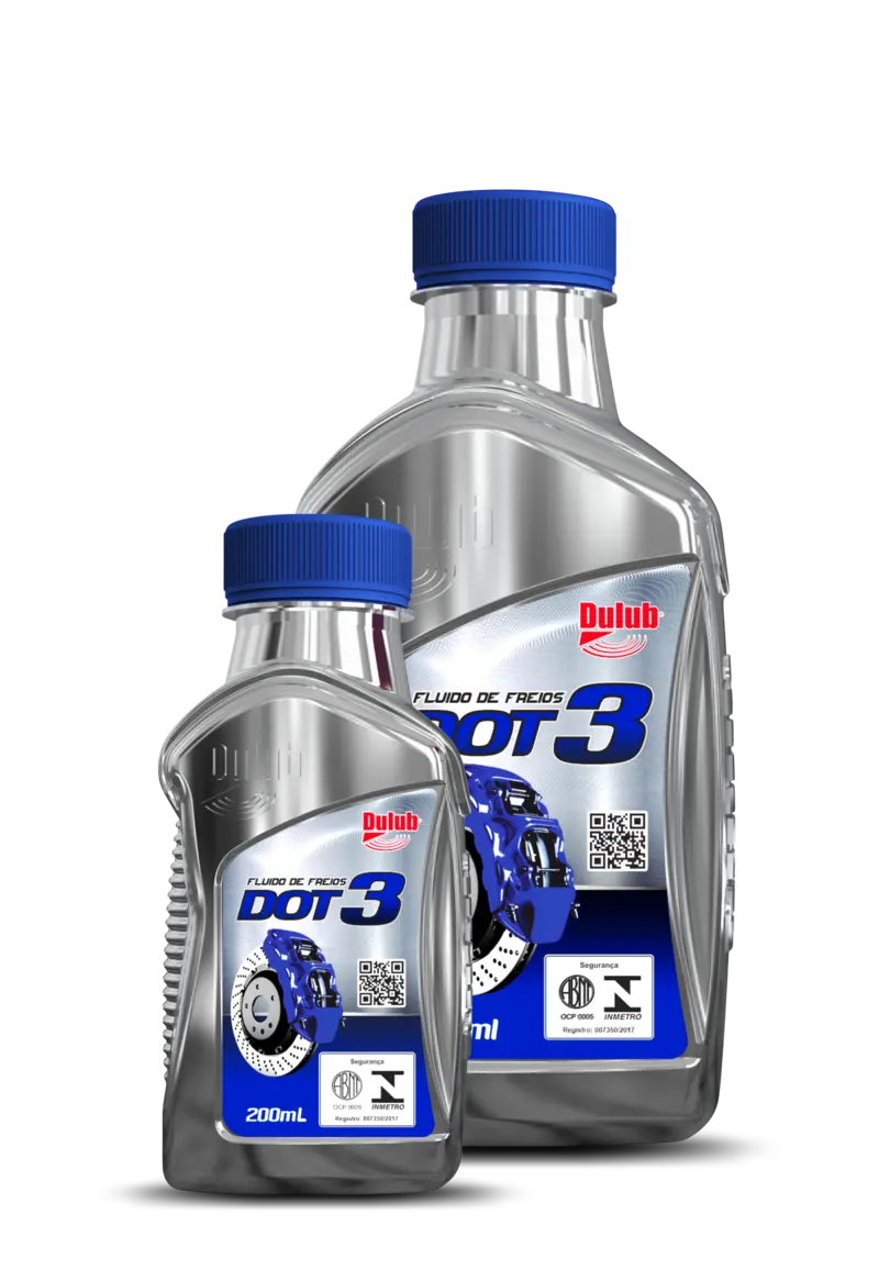 O DULUB DOT 3 é um fluido para freio e embreagens hidráulicas com alto ponto de ebulição. O DOT 3 atende os limites especificados pelas normas nacionais e internacionais e as supera. O DULUB DOT 3 atende às normas ABNT NBR 9292 - Tipo 3 e é certificado pelo INMETRO. TECNOLOGIA: O DOT 3 é essencialmente mistura de glicóis e atua contra corrosão e oxidação. É compatível com borrachas e com materiais não metálicos.