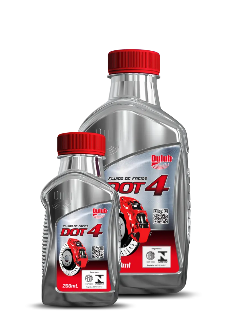 O DULUB DOT 4 é um fluido para freio e embreagens hidráulicas e tem ponto de ebulição (fervura) e baixa viscosidade, como requerido pelas principais montadoras. O fluido para freio DOT 4 atende e supera os limites especificados pelas normas nacionais e internacionais. TECNOLOGIA: Segurança superior ao tipo 4, é um fluido com alto ponto de ebulição úmido. São superiores a proteção contra oxidação e a corrosão. O fluido é compatível com materiais não metálicos e borrachas.