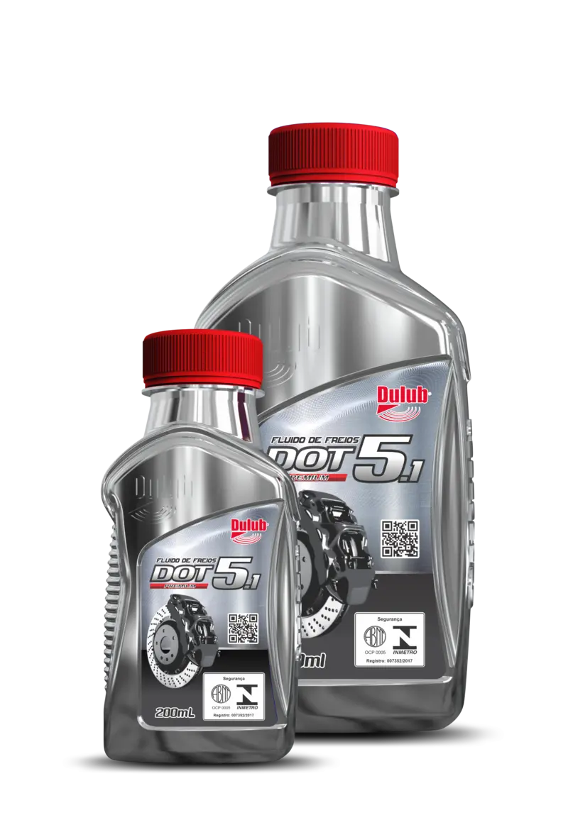 O DULUB DOT 5.1 é uma fluido para freio e embreagem hidráulica, classe de segurança 5.1, com altíssimo ponto de ebulição (fervura) e baixa viscosidade, como requerido pelas principais montadoras. Direcionado para veículos e motos de alto desempenho proporcionando uma maior segurança. O fluido para freio DOT 5.1 atende e supera os limites especificados nas normas nacionais e internacionais. TECNOLOGIA: Maior período de troca. Maior segurança, alto ponto de ebulição úmido. Proteção superior contra corrosão e oxidação. Compatibilidade com materiais metálicos, não metálicos e borrachas.