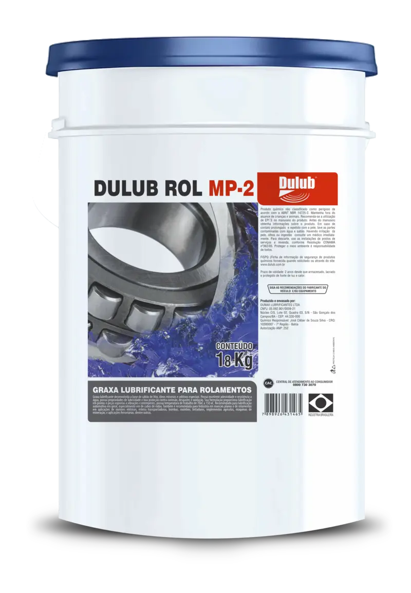 Graxa lubrificante desenvolvida a base de sabão de lítio, óleos minerais e aditivos especiais. Possui excelente adesividade e resistência a água. DULUB ROL MP-2 possui propriedades de lubricidade, anticorrosividade, antidesgaste e antioxidação. Sua formulação proporciona lubrificação em pontos e peças expostas a vibrações e intempéries.