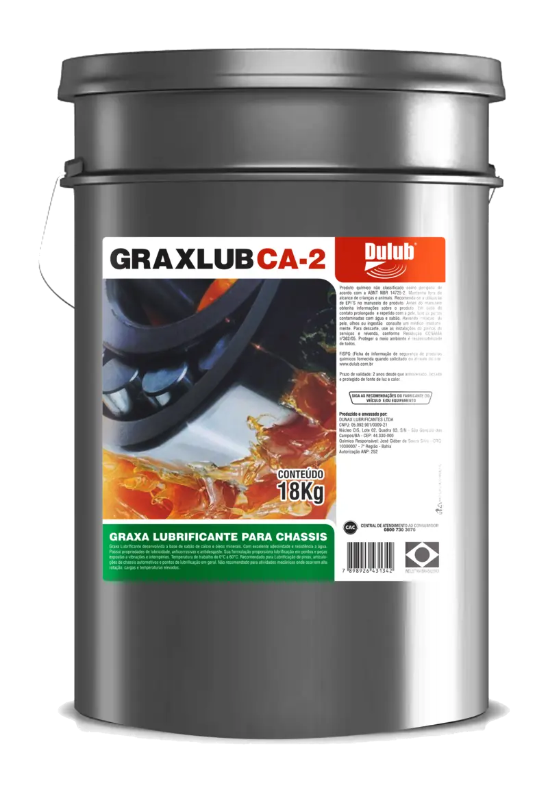 Graxa lubrificante desenvolvida a base de sabão de cálcio e óleos minerais. Possui excelente adesividade e resistência a água. DULUB GRAXLUB CA-2 possui propriedades de lubricidade, anticorrosivas e antidesgaste. Sua formulação proporciona lubrificação em pontos e peças expostas a vibrações e intempéries.
