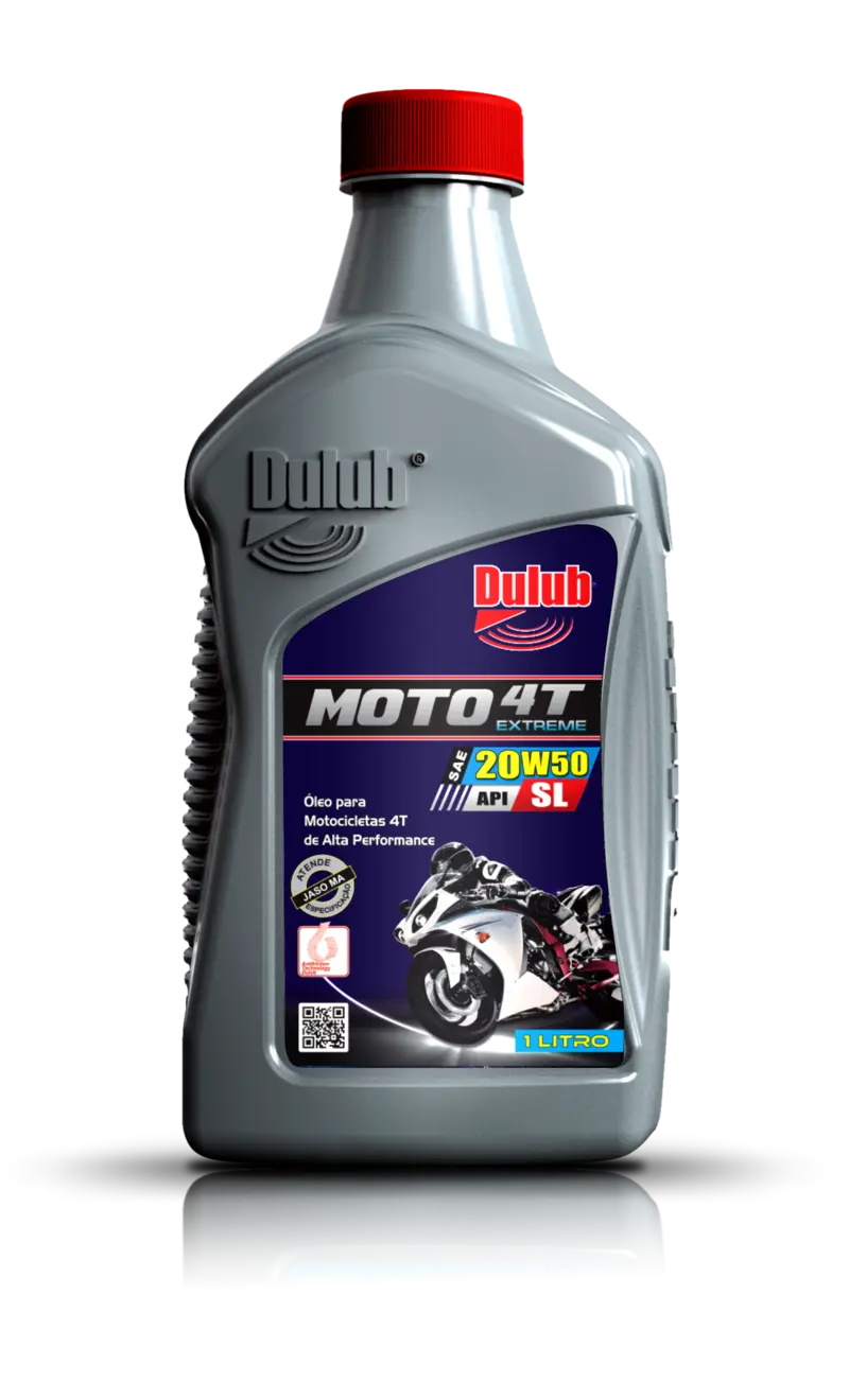 Óleo lubrificante multiviscoso mineral de avançada tecnologia para uso em motores de motocicleta quatro tempos de alta rotação. Atende as especificações de serviços API SL e JASO MA. Disponível no grau SAE 20W50. Dulub Moto 4T Extreme é recomendado para o uso em todos os motores de motocicletas 4 tempos, e especialmente desenvolvido para proporcionar superior performance aos motores que operam em condições extremas.
