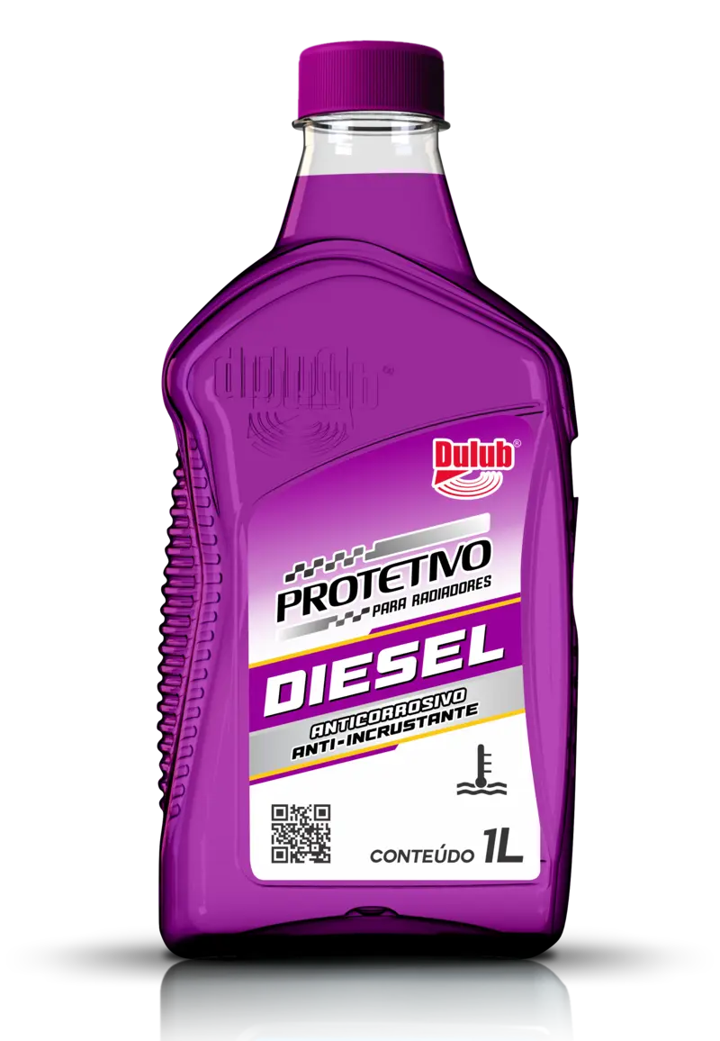 DULUB PROTETIVO PARA RADIADORES DIESEL é um composto químico diluído – PRONTO PARA USO desenvolvido a base de polímeros ativos semissintéticos de elevada performance, alta condutividade térmica e bases especiais anticorrosivas orgânicas, não tóxicas ao meio ambiente. É livre de nitritos, fosfatos, aminas e silicatos. Superior proteção contra corrosão, inibe a formação de espuma, baixa o ponto de congelamento e eleva ponto de fervura da água. Compatível com juntas, retentores, elastômeros e outras peças não metálicas que compõe todo sistema de arrefecimento do veículo.