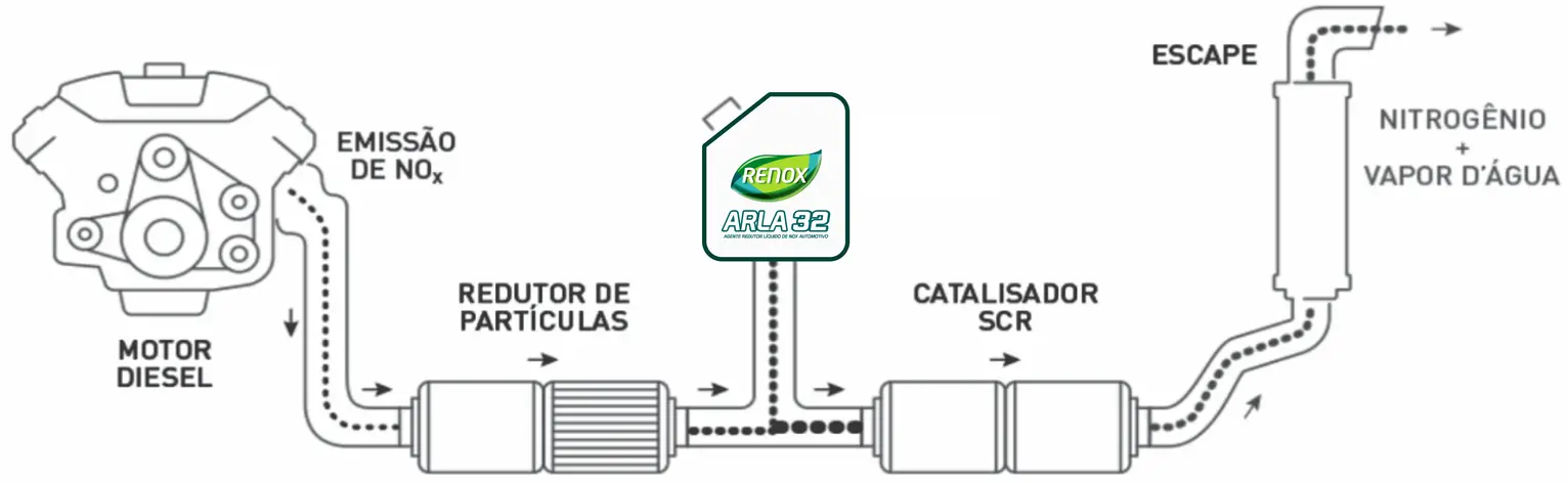 sistemas de exaustão como agente redutor de emissões de óxidos de nitrogênio (NOx). O Renox Arla